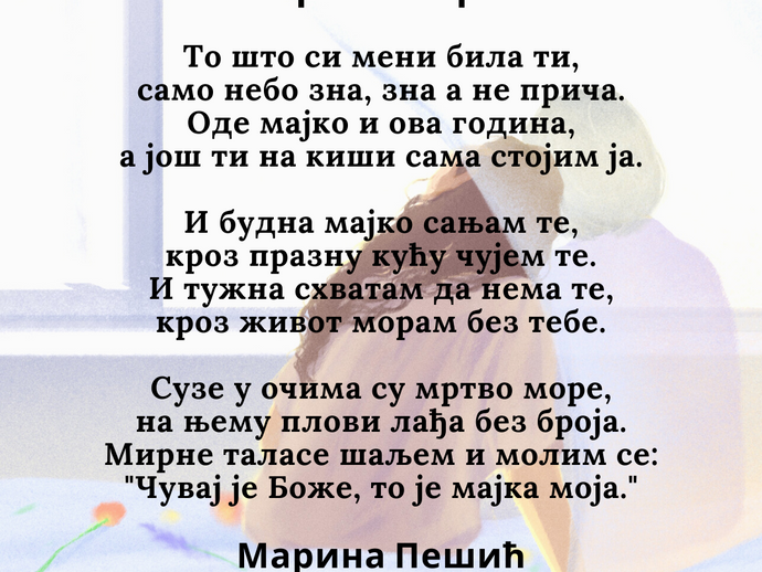 Три речи у којe цео космос може да се онако лепо ушушка и заспи - очи моје мајке. A само те три речи су моја највећа жеља - да их опет...